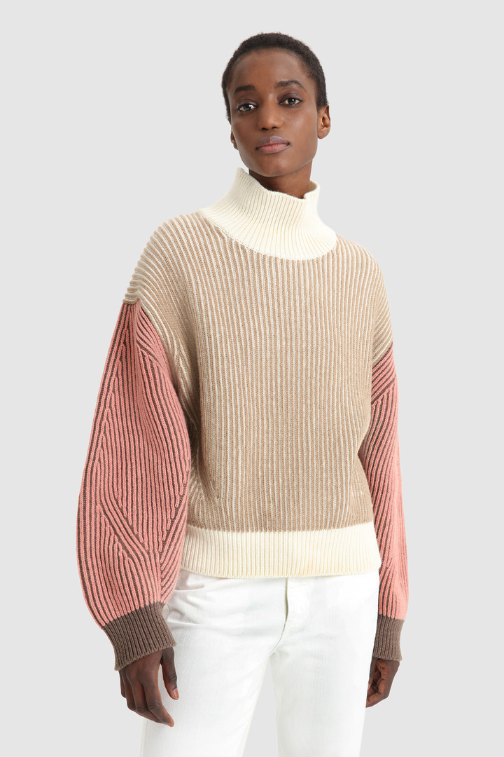 Jersey lana cuello alto Clearance, Jersey de cuello alto en lana con mangas a contraste Marrón | Woolrich Clearance
