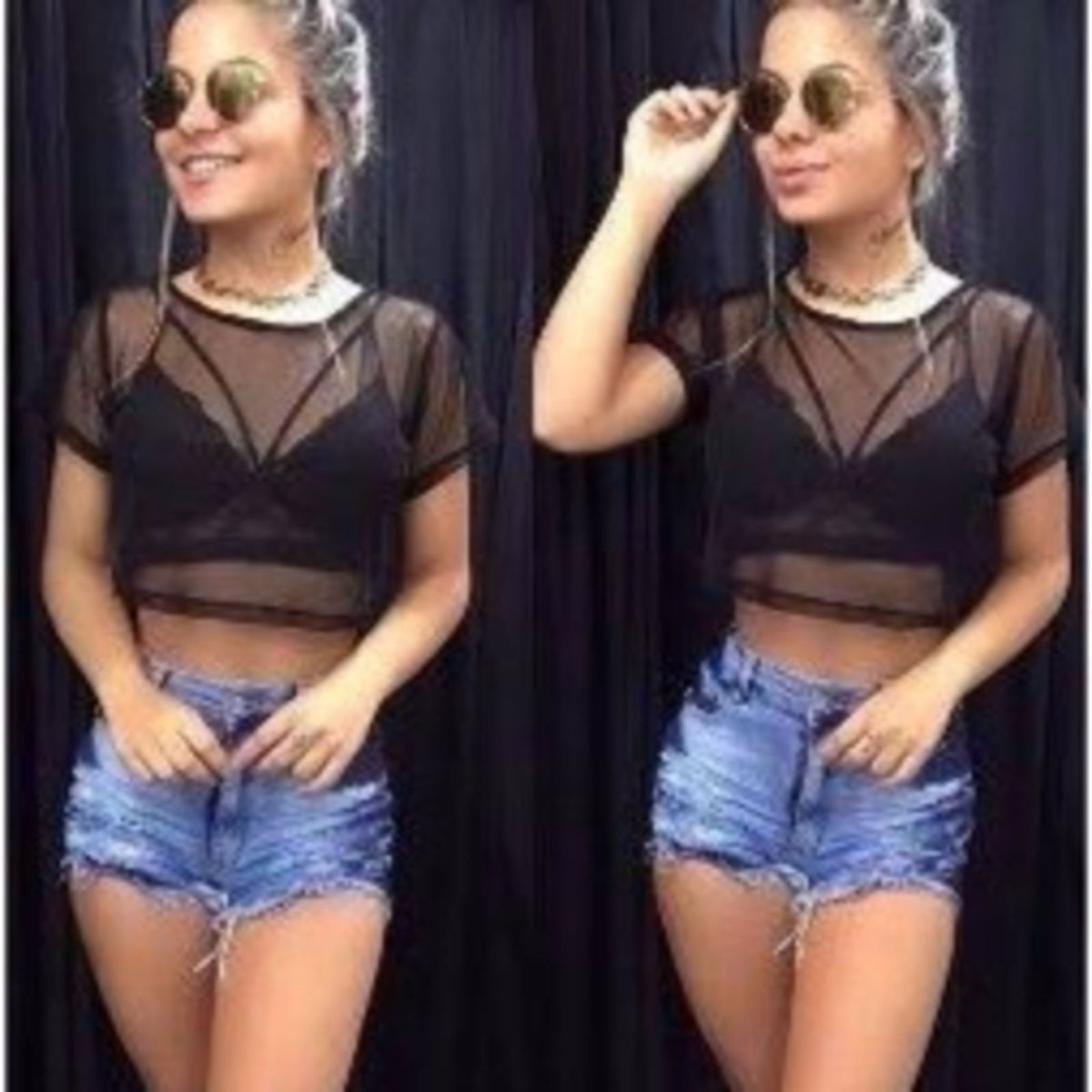 - Cropped preto transparente shop