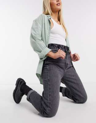 Jean mom taille elastique Clearance, Pull\u0026Bear - Jean mom avec taille élastique - Bleu moyen | ASOS Clearance