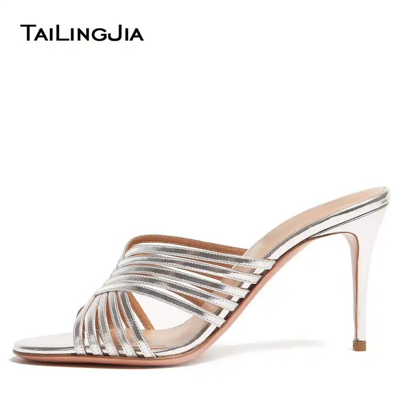 Ladies silver mules Clearance, Fanyuan High Heels Slipper Sandals Clearance