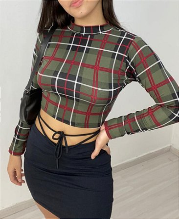 - Cropped xadrez manga longa shop