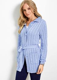 Gilet long femme bon prix Clearance, Gilet long douillet en maille avec capuche et motif torsadé - noir Clearance