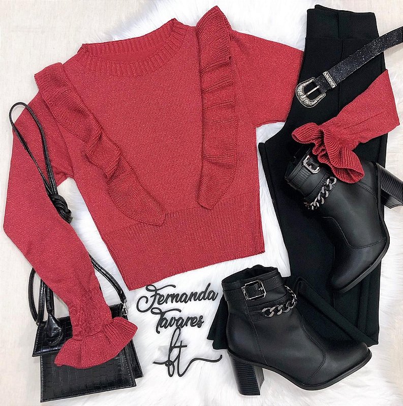 - Blusa tricot lurex babado sale