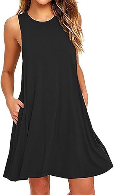 Ladies sleeveless shirt dress Clearance, T-Shirt Dress Flowy Loose Dress Clearance
