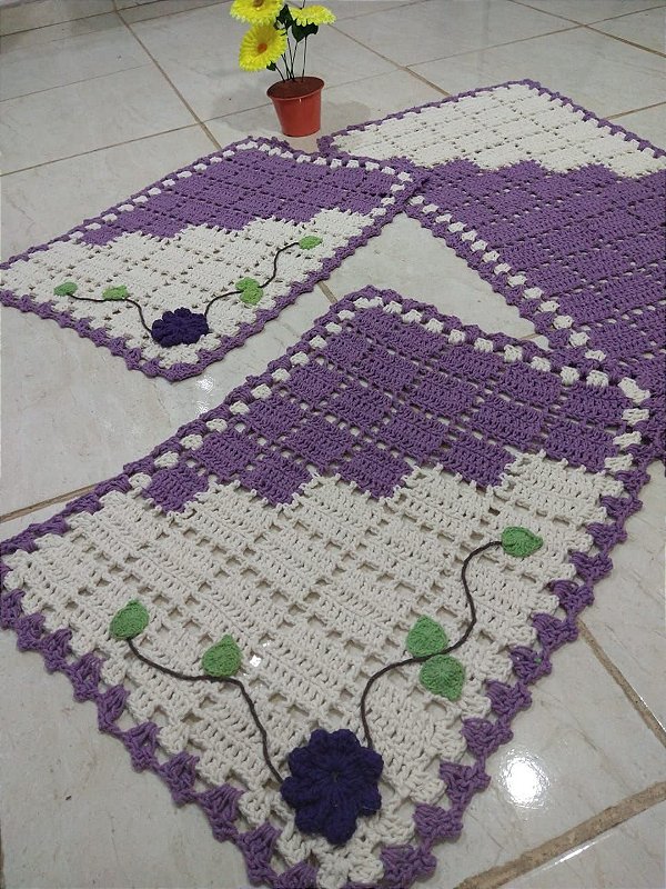 Tapete de crochê lilás Clearance, Arte \u0026 Tear - Mimos Para Seu Lar - Jogo de Passadeira em Crochê Basic - Lilás Clearance