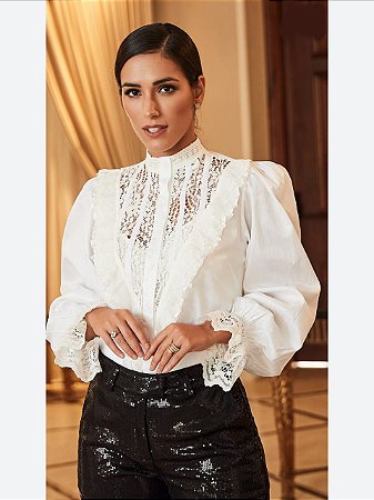 Camisa renda branca Clearance