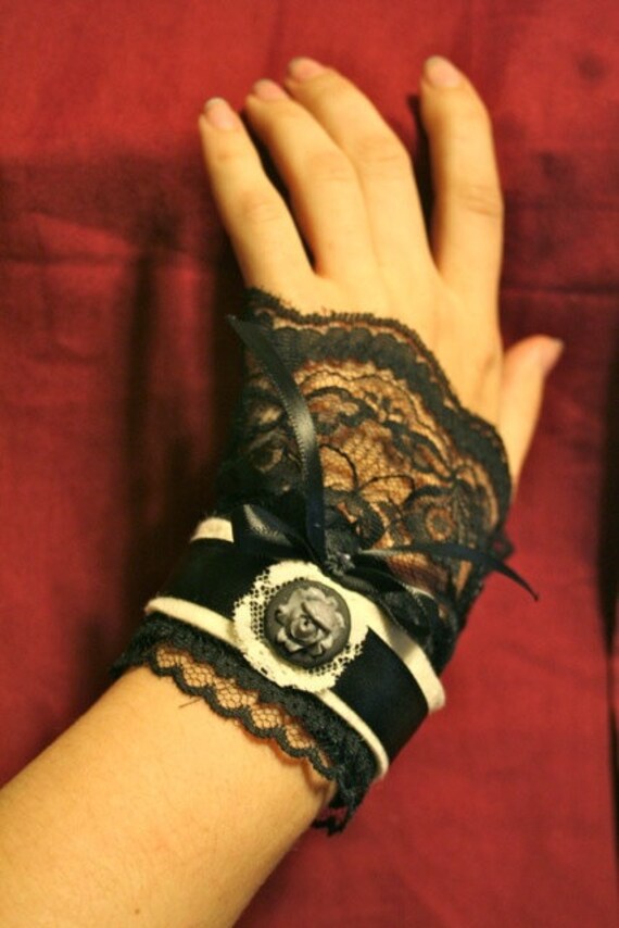 Lace wrist cuff Clearance, Items similar to Elegant Lace Wrist Cuff in Black Lace with Rose on Etsy Clearance