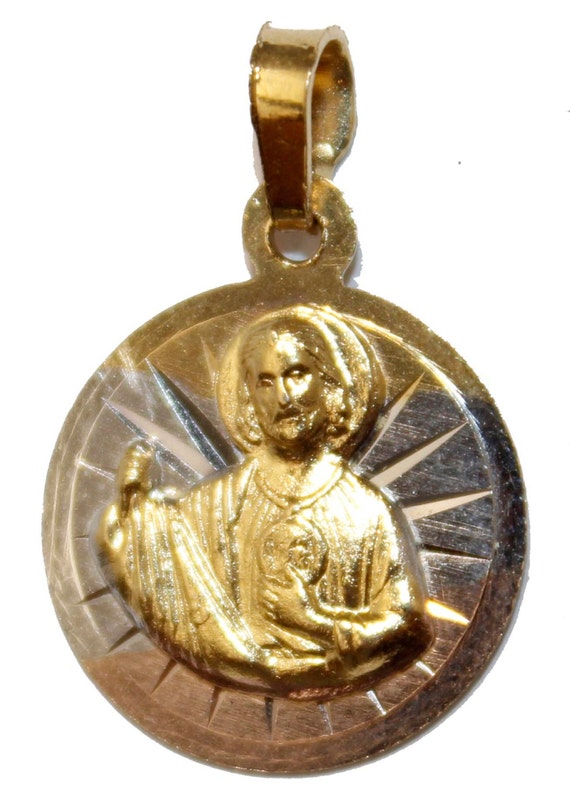 San judas tadeo gold Clearance, Gold Plated Big Saint Jude Pendant Necklace Figaro 26" San Judas Tadeo â Fran & Co. Jewelry Clearance