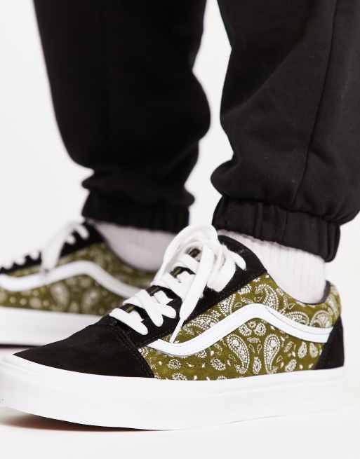 Vans old skool negras y verdes Clearance, Zapatillas de deporte negras y verde oliva con estampado de cachemir Old Skool de Vans | ASOS Clearance