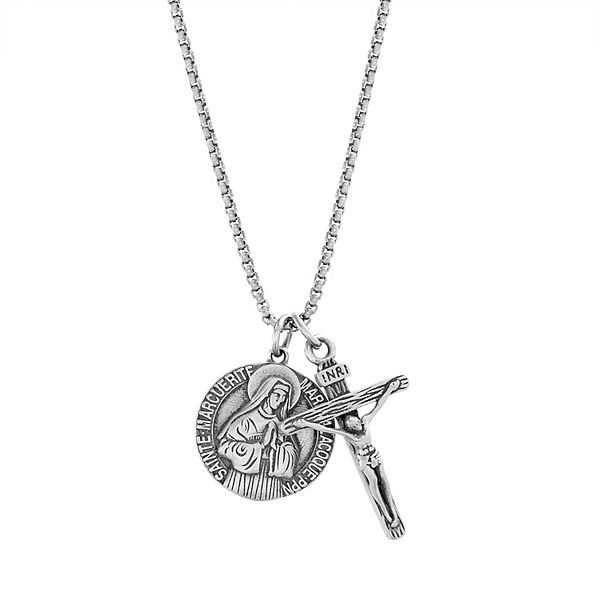 Stainless steel medallion pendant Clearance, Men's Jesus Medallion Pendant in Stainless Steel - 24" | Zales Clearance