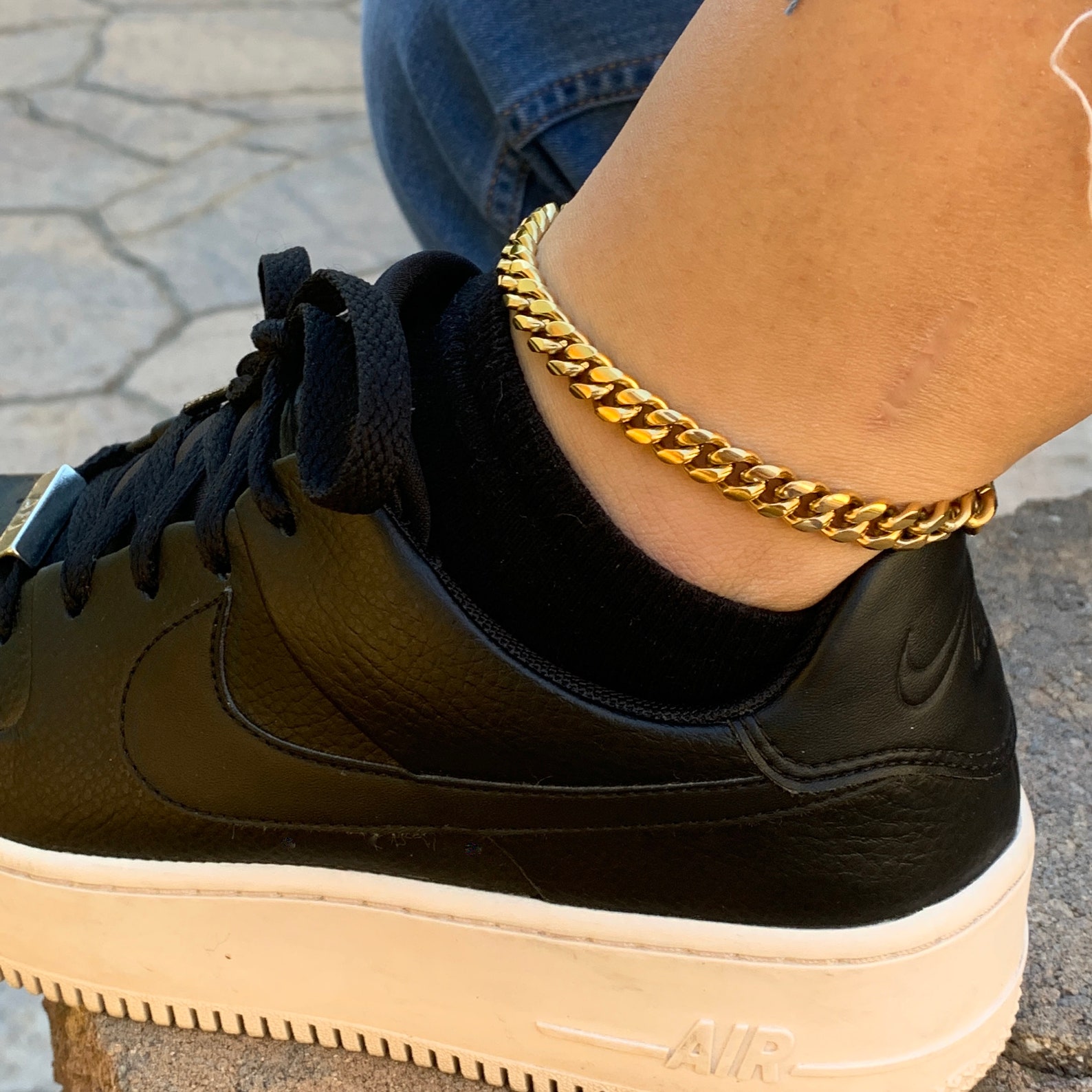 - Gold cuban link ankle bracelet