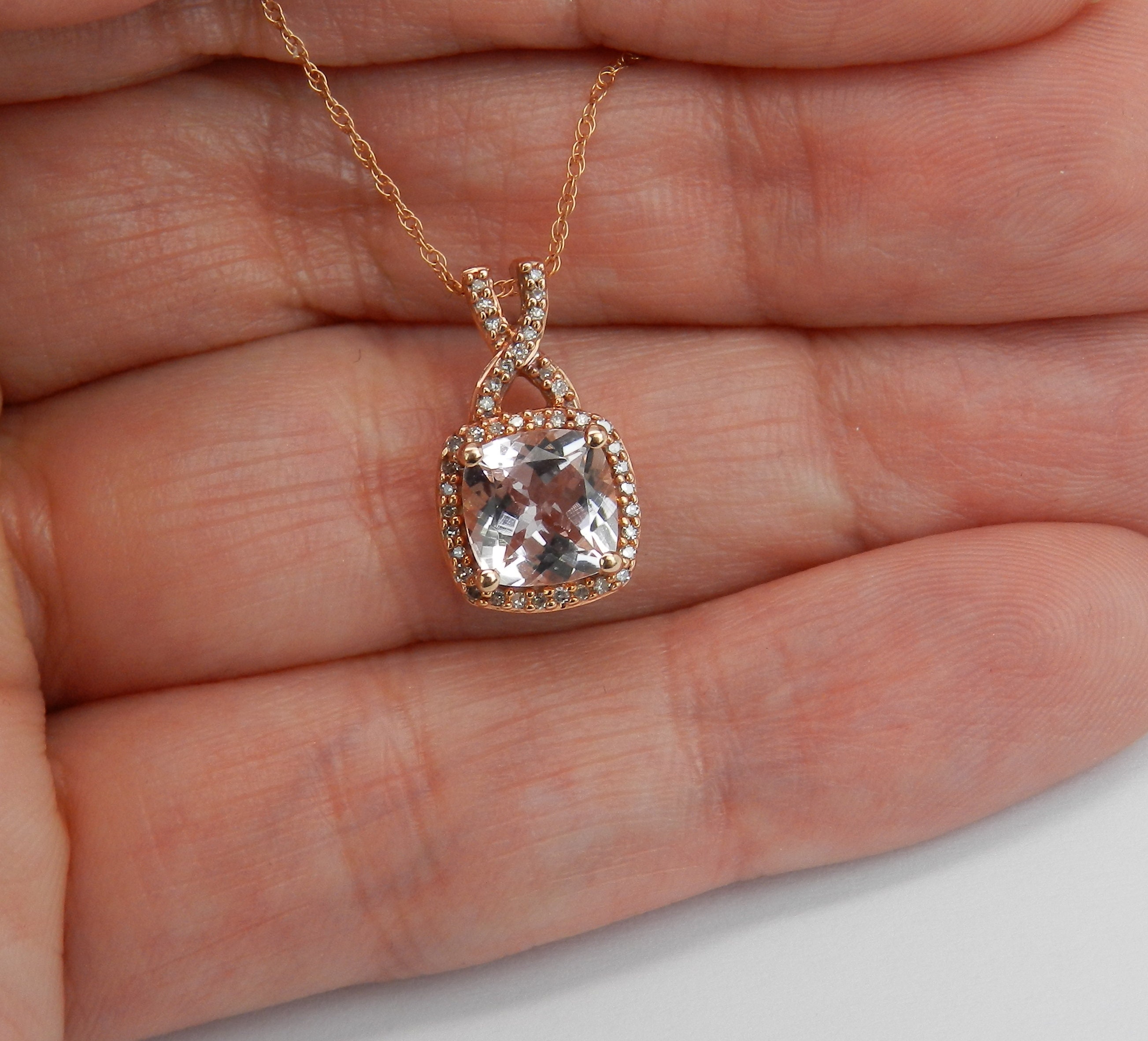 Halo necklace meaning Clearance, Diamond and Cushion Cut Morganite Halo Pendant Necklace Rose Gold Wedding Gift 18 Chain Clearance