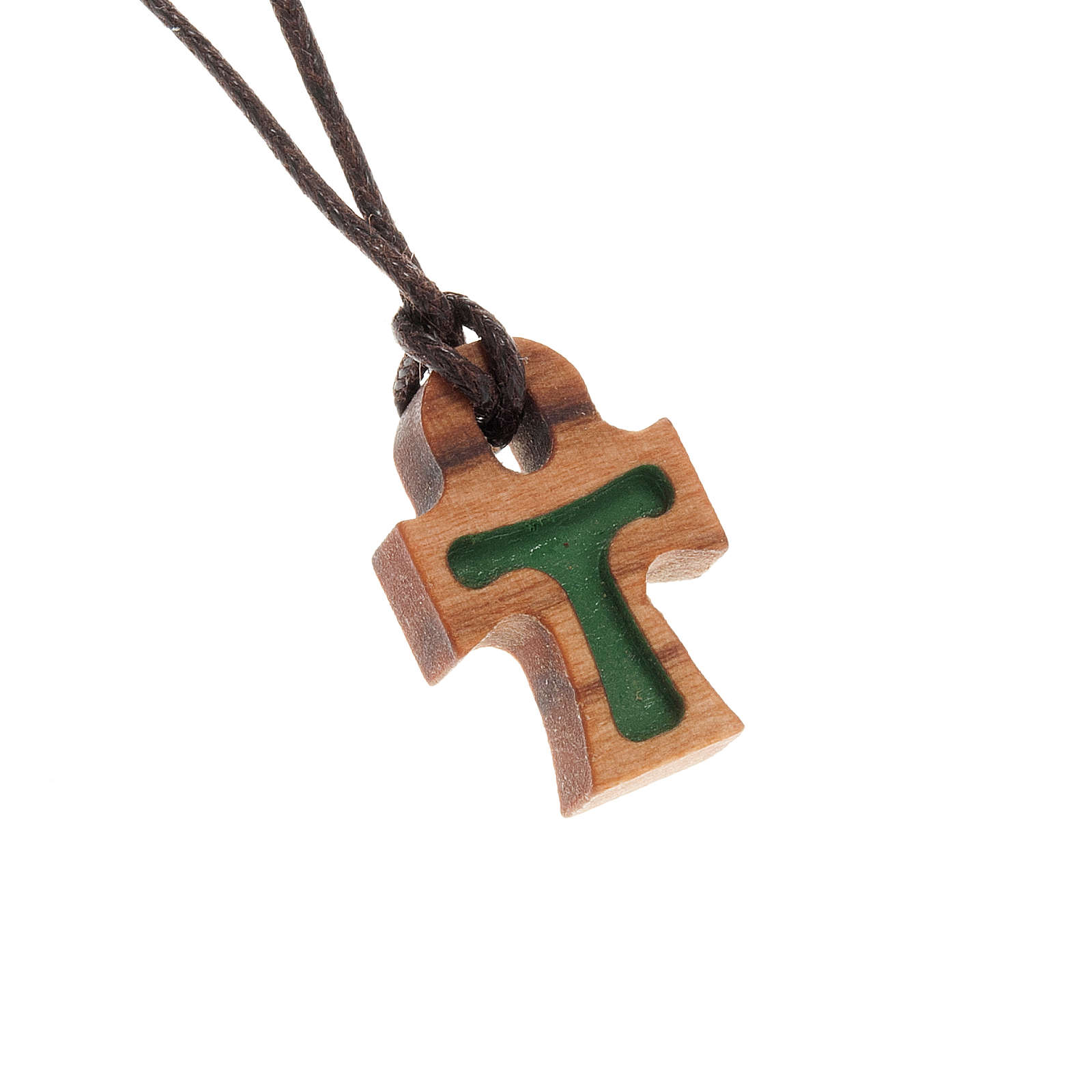 Tau cross pendant Clearance, Tau cross pendant in green olive wood | online sales on HOLYART.co.uk Clearance