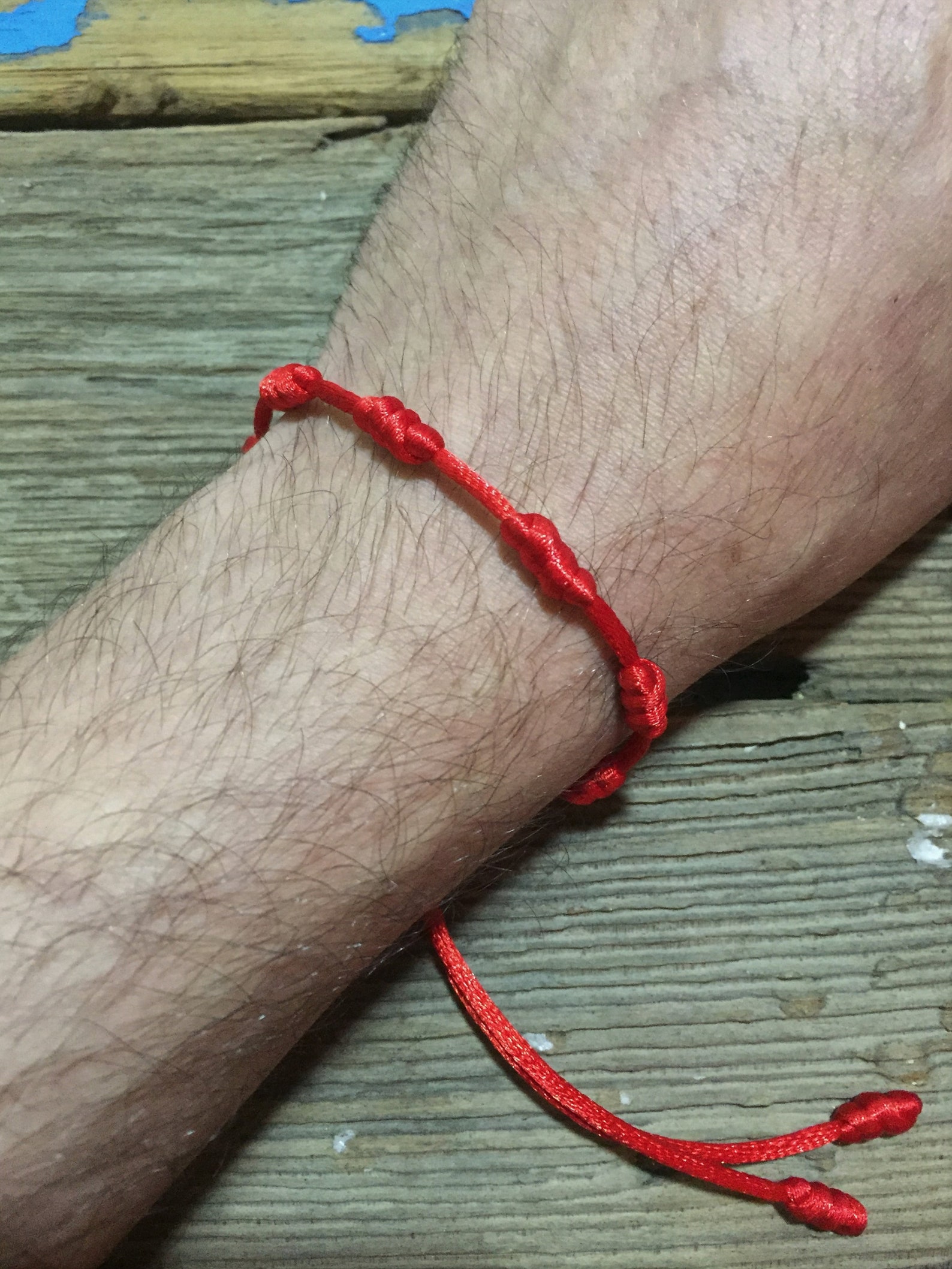 - Red bracelet with 7 knots