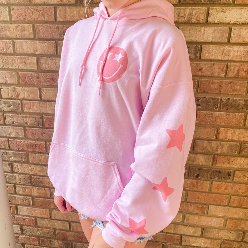 Pink smile hoodie Clearance, Pink Smiley Face Star Eyes Hoodie Sweatshirt Unisex Pink - Etsy Clearance