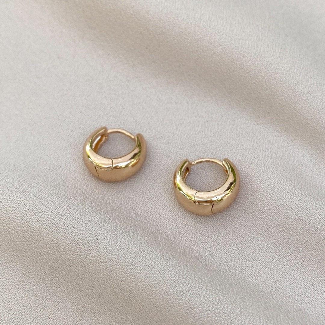 Gold filled mini hoops Clearance, ELEN 18k Gold-filled Gold Mini Puffy Hoops Mini Hoops Gold Small Hoops Mini Huggies High Quality Clearance