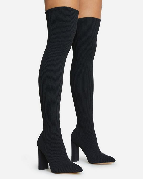 Sock boots long Clearance, Only-Fans Block Heel Over The Knee Thigh High Long Sock Boot In Black Ribbed Knit | EGO Clearance