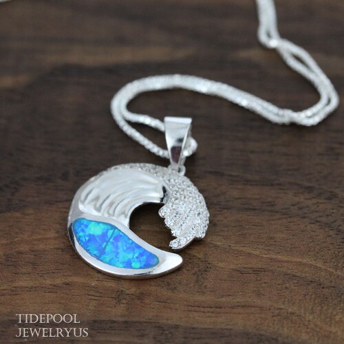 Opal wave necklace Clearance, SOLID 925 STERLING SILVER OPAL HAWAIIAN OCEAN WAVE PENDANT BLING CZ 21 â Arthur's Jewelry Clearance