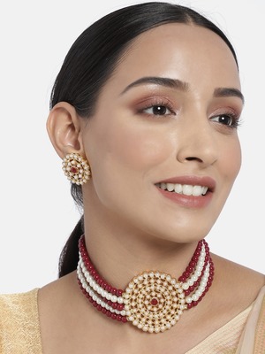 Gold moti choker Clearance, Gold Plated Traditional Light Weight Beaded Choker Set Glided With Moti Work (ML239MW1) - I Clearance