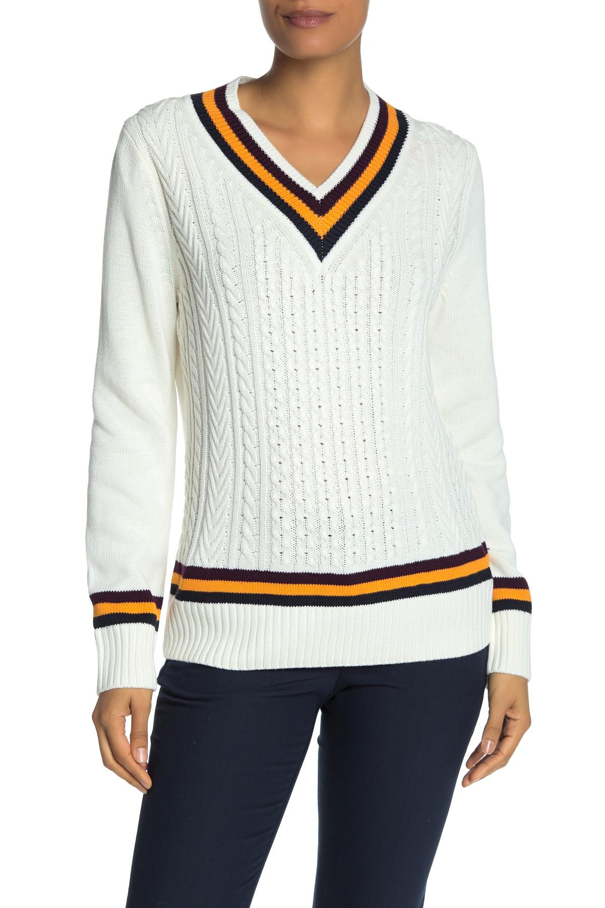 Women's v neck varsity sweater Clearance, Tommy Hilfiger Cotton Tipped V-neck Clearance