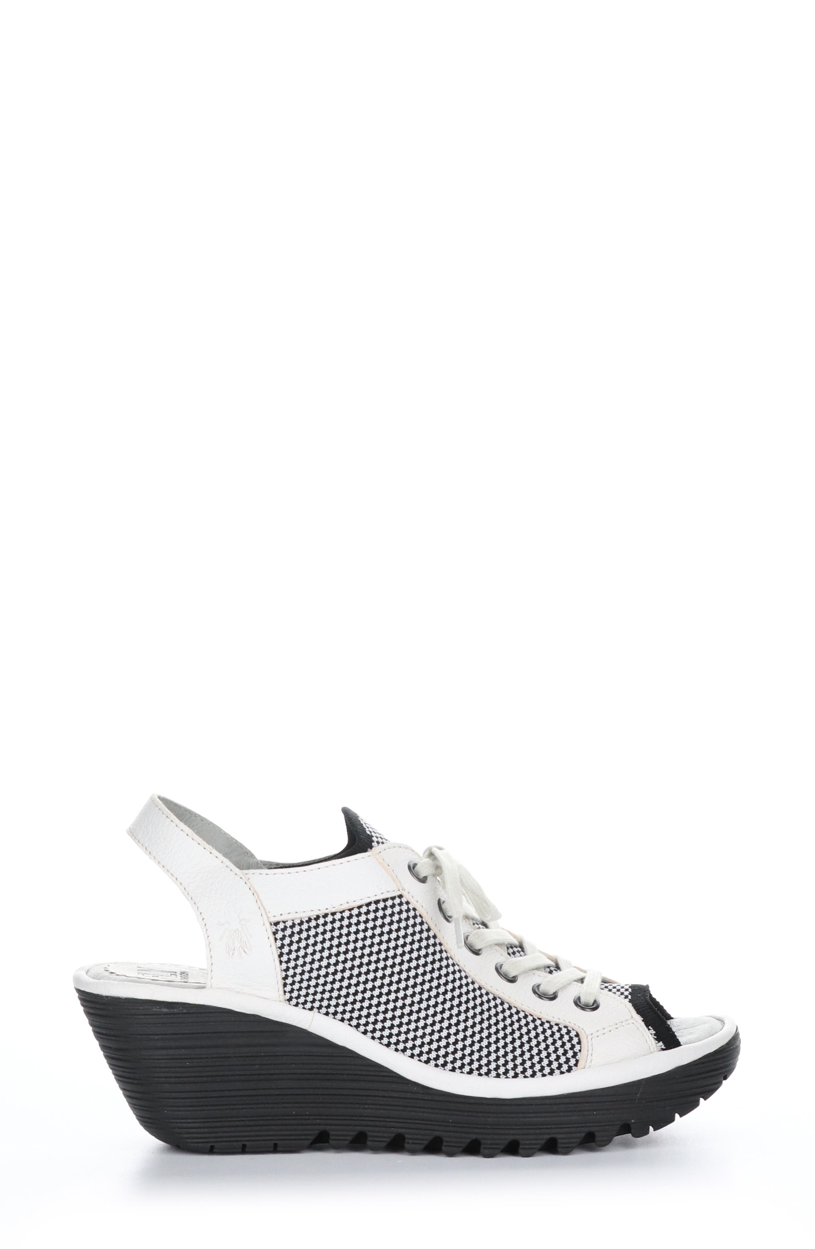 Fly london yedu Clearance, Fly London Yedu Lace-Up Wedge Sandal in White/Blue Mousse/Knit Clearance