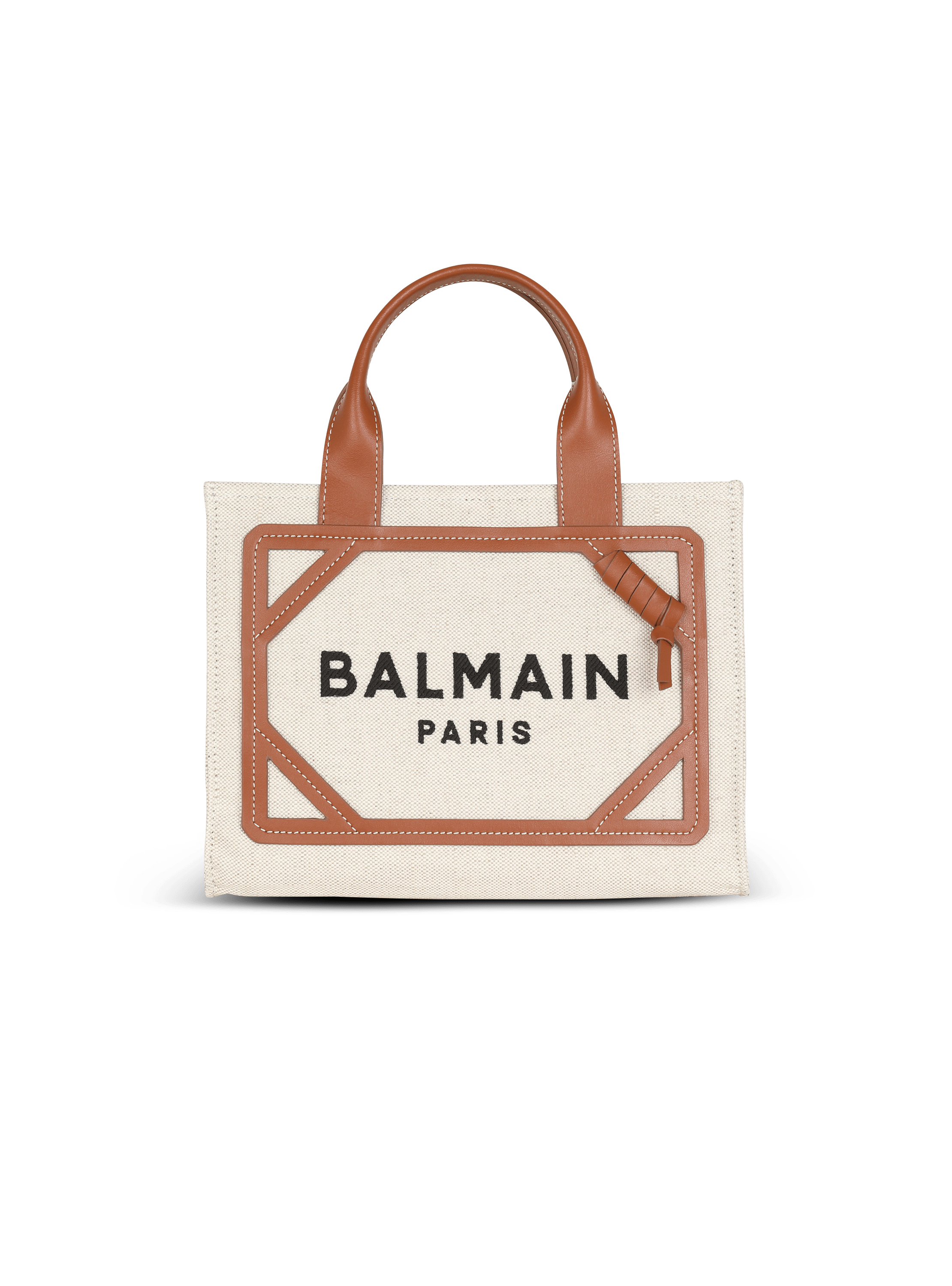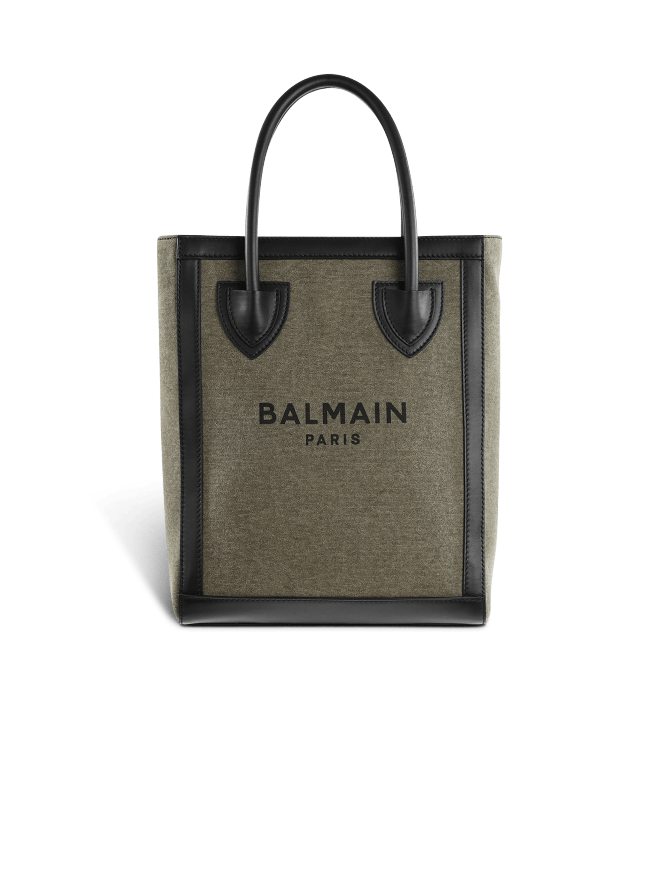 Balmain canvas bag Clearance, B-Army mini canvas shopping bag with leather inserts khaki - Women | BALMAIN Clearance