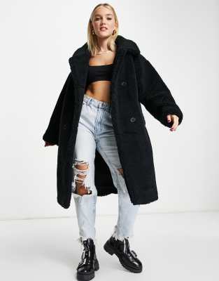 Teddy coat schwarz Clearance, Monki – Teddy-Mantel in Schwarz - BLACK | ASOS Clearance