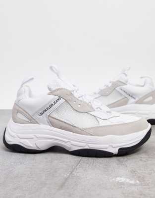 - Calvin klein marvin trainers in white and cream