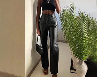 Leather trousers for sale Clearance, Women High Waist Skinny Leather Pants Clearance