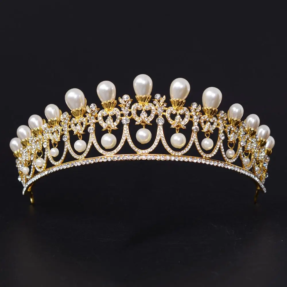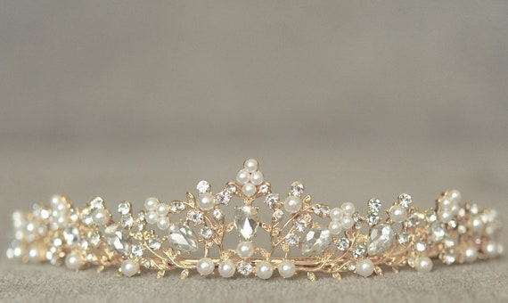 Gold and pearl tiara Clearance, SWEETV Rose Gold Pearl Wedding Tiara Clearance