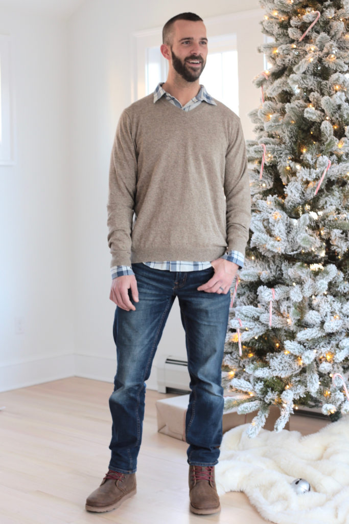 Plaid shirt with sweater over Clearance, brown cashmere sweater over plaid shirt Clearance