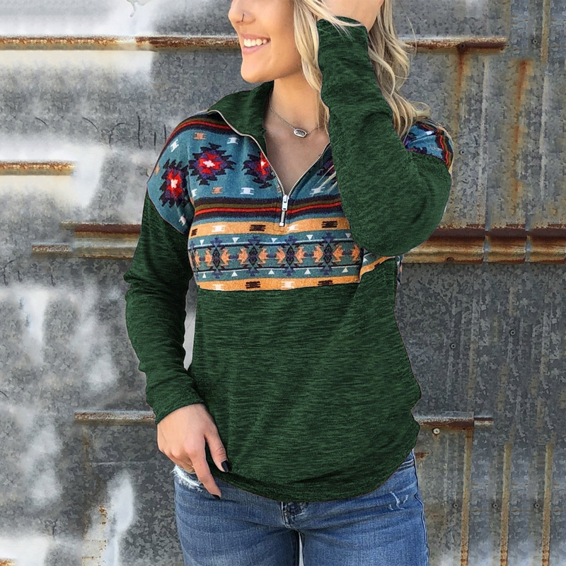 - Geometric zipper up sweatshirt sale