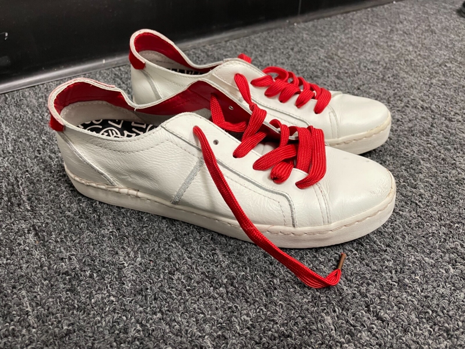 - White and red designer sneakers sold