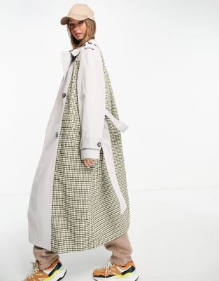 Asos check trench coat Clearance, Check Spliced Oversized Trench Coat Clearance