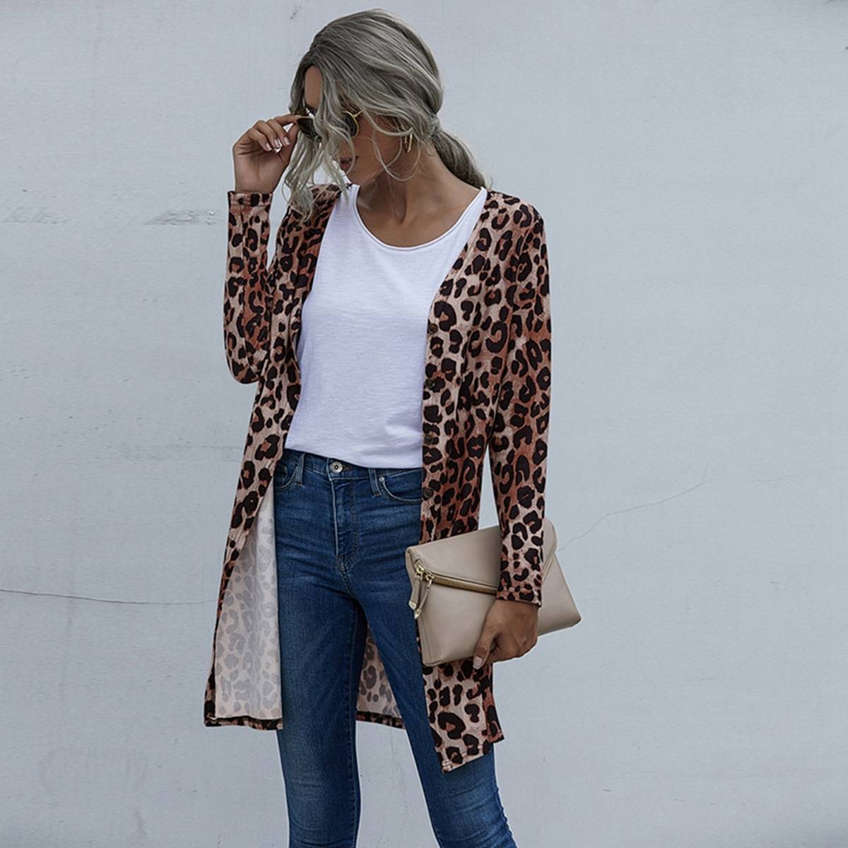 Spring kimono cardigan Clearance, Eopard Printed Kimono Cardigan Button Clearance
