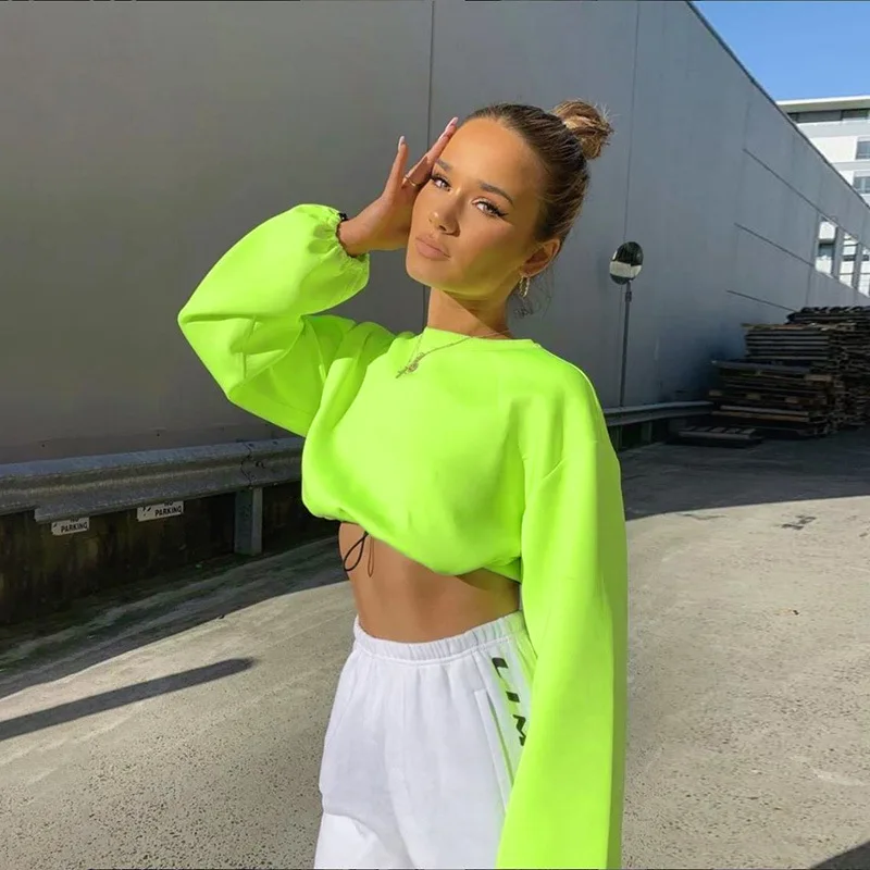 Crop top neon green Clearance, Neon Green Sweatshirts Long Sleeve O Clearance