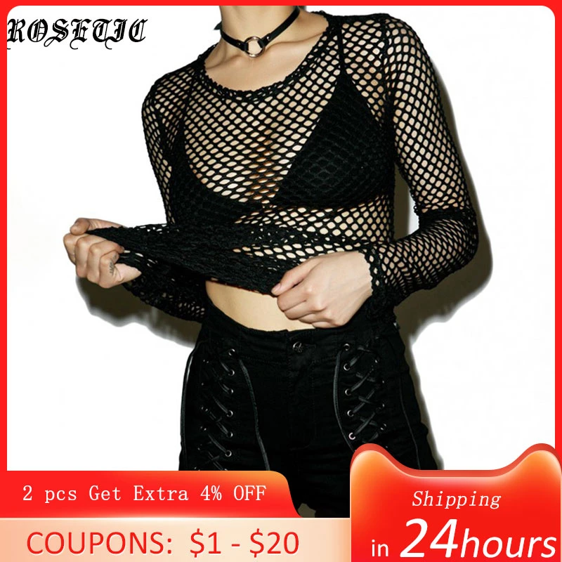 Ladies fishnet tops Clearance, EFINNY Women Sheer Mesh Crop Top Clearance