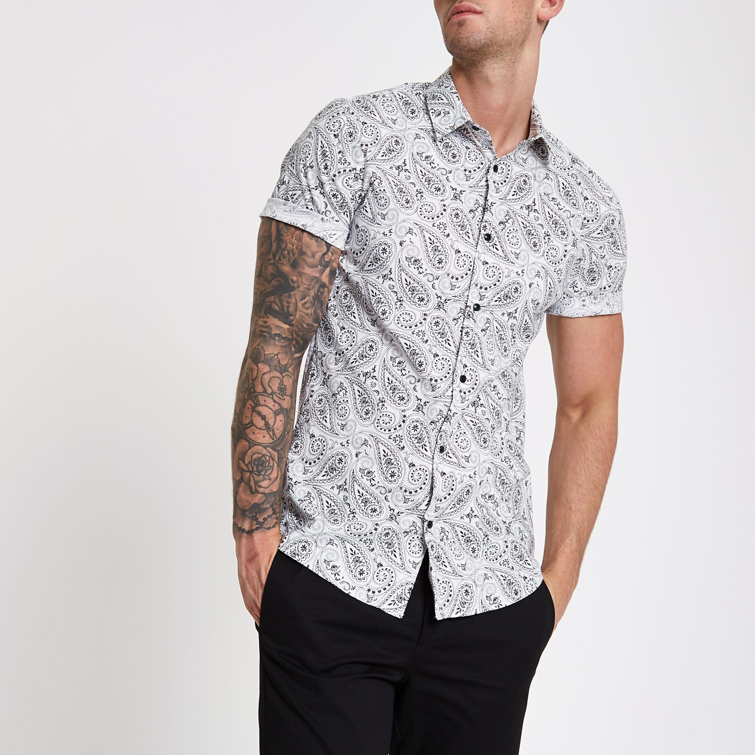 White paisley shirt Clearance, River Island Cotton White Muscle Fit Clearance