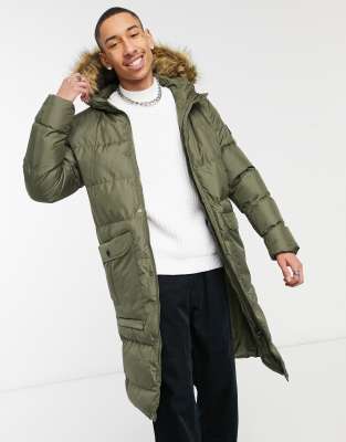 Khaki puffer jacket with fur hood Clearance, SIKSILK Puffer Jacket With Faux Fur Clearance