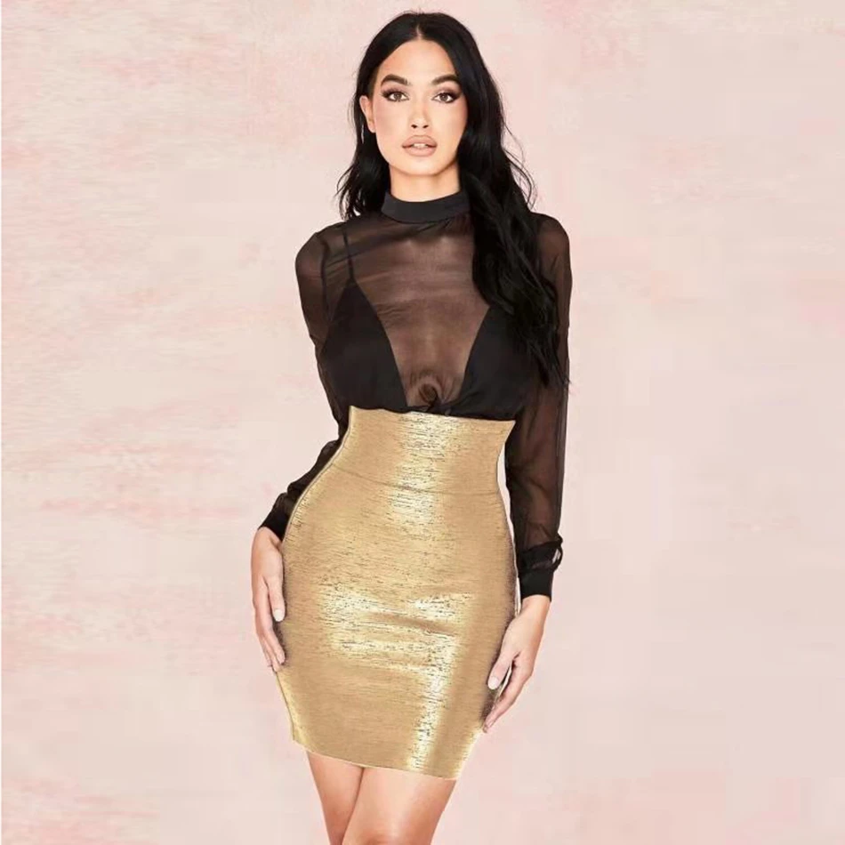 - Gold high waisted skirt sale online