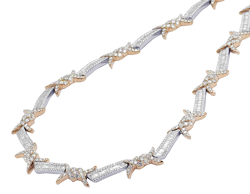 Barbed wire diamond chain Clearance, TwoTone Rose White Gold Barbed Wire Thorn Baguette Real Diamond Chain 20 19.5CT | eBay Clearance