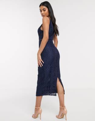 - Shopping Lace ladder detail midi dress