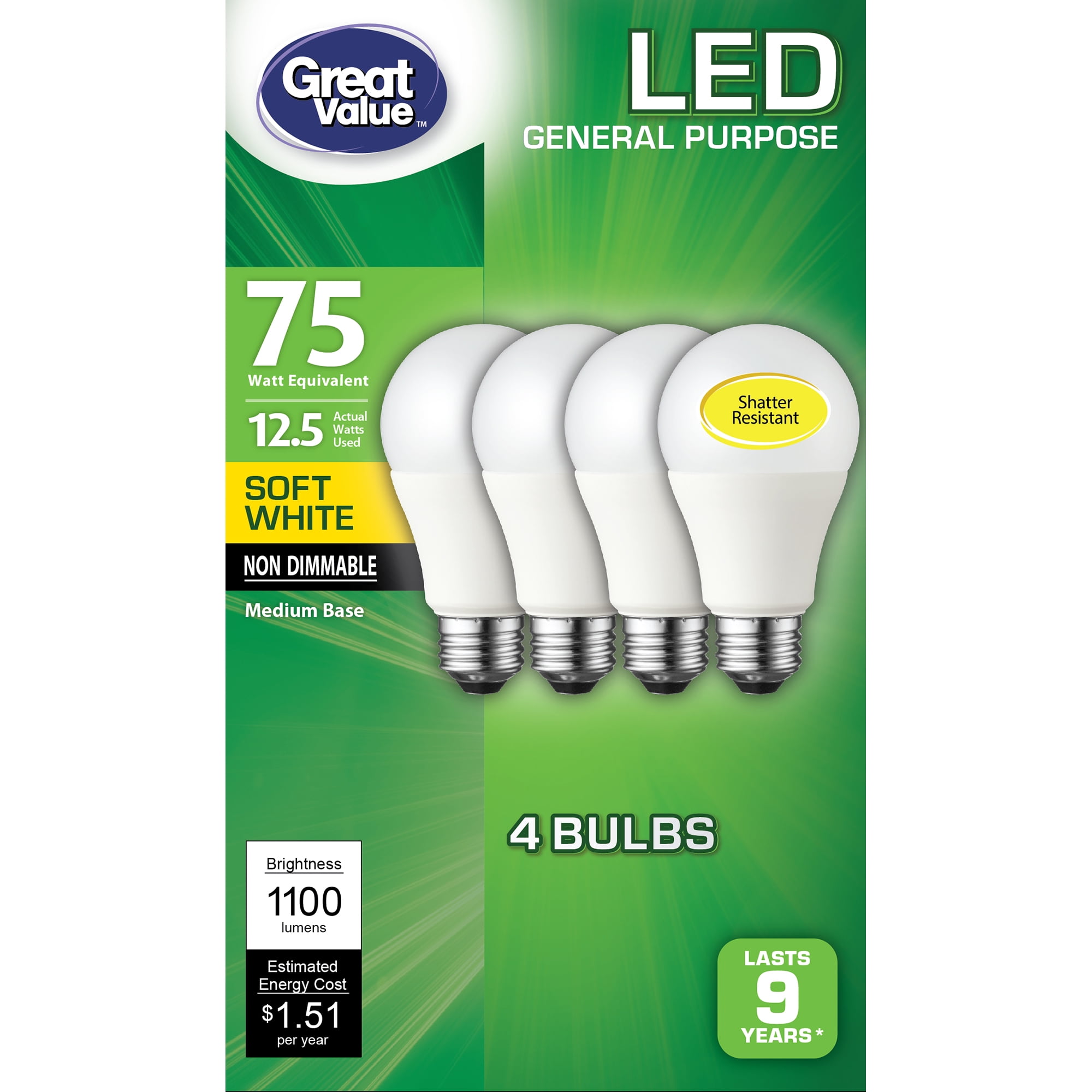 Walmart light bulbs Clearance, LED Light Bulb, 9W (60W Equivalent Clearance
