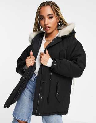 Black drawstring jacket Clearance, NA-KD faux fur drawstring jacket in Clearance