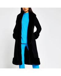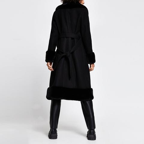 - Black long faux fur robe belted coat clearance
