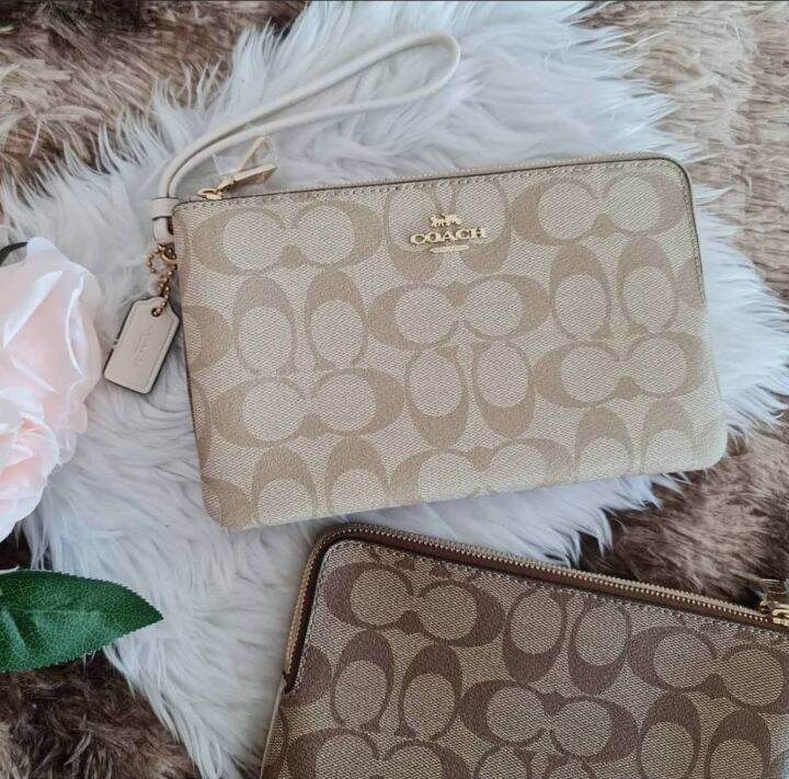 Coach dual card case Clearance, COACH DOUBLE ZIP WALLET WRISTLET SIGNATURE C5576 IN BROWN 1941 RED – eatsleepshop Clearance