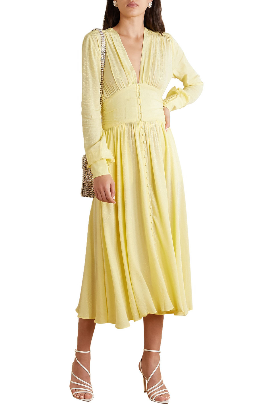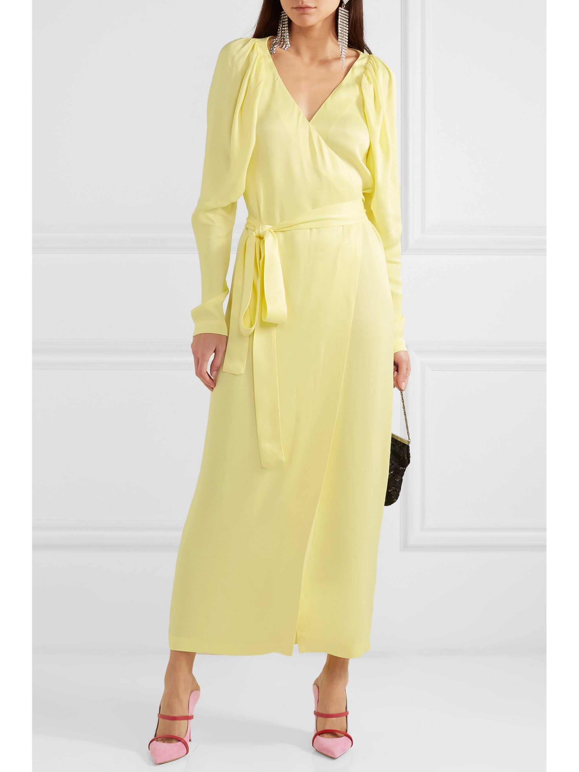 Rotate birger christensen yellow dress Clearance, Pastel yellow Satin wrap maxi dress Clearance
