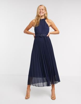 - Blue pleated midi dress clearance