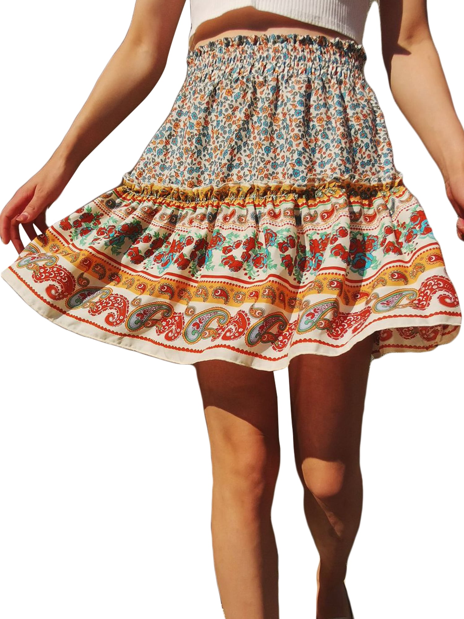 Bohemian short skirts Clearance, Boho Vintage Floral Print Mini Skirt Clearance