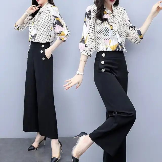 Blouse for pant suit Clearance, Women Chiffon Pant Suits Elegant Formal Clearance